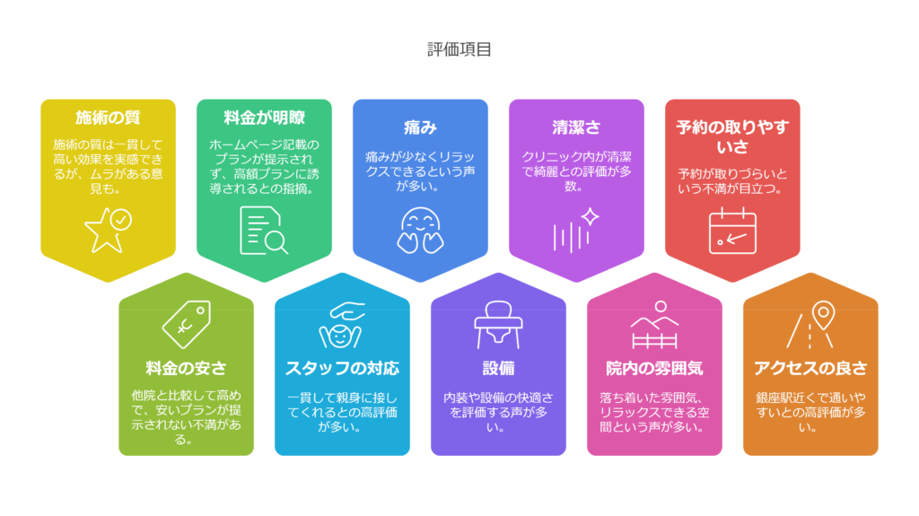 レジーナクリニックの口コミを分析すると、以下の3つのポイントが浮かび上がりました。